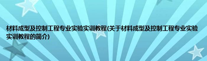 材料成型及控制工程专业实验实训教程(关于材料成型及控制工程专业实验实训教程的简介)