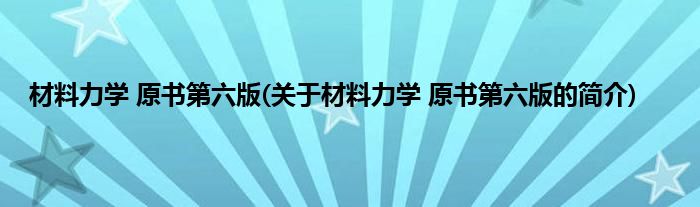 大家好,材料力学 原书第六版,关于材料力学 原书第六版的简介很多人还不知道,现在让我们一起来看看吧!