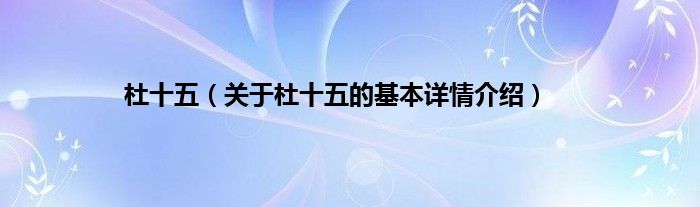 本文关于杜十五的基本详情介绍就讲解完毕,希望对大家有所帮助。
