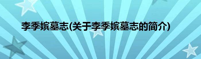 李季嫔墓志(关于李季嫔墓志的简介)