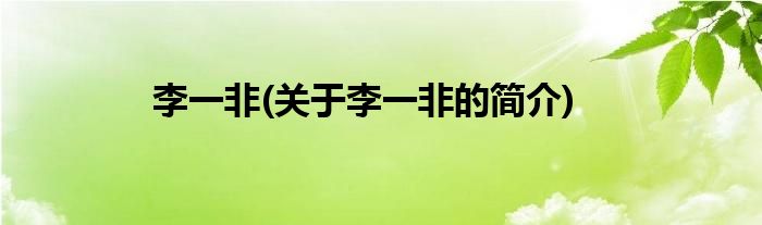 本文关于李一非的简介就讲解完毕,希望对大家有所帮助。