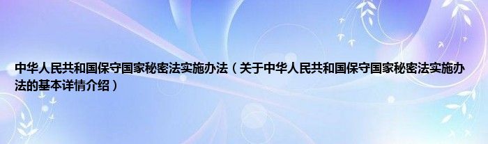 本文关于中华人民共和国保守国家秘密法实施办法的基本详情介绍就讲解完毕,希望对大家有所帮助。