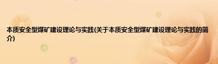 本文关于本质安全型煤矿建设理论与实践的简介就讲解完毕,希望对大家有所帮助。