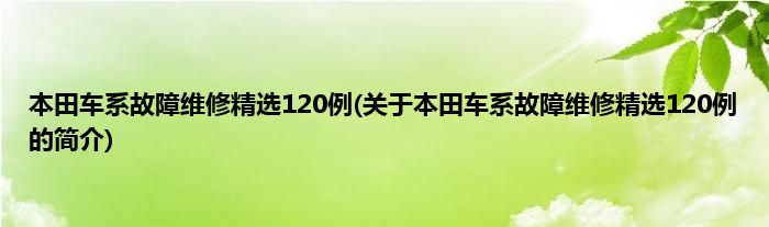 本文关于本田车系故障维修精选120例的简介就讲解完毕,希望对大家有所帮助。