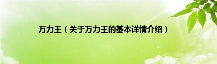 本文关于万力王的基本详情介绍就讲解完毕,希望对大家有所帮助。