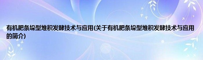 本文关于有机肥条垛型堆积发酵技术与应用的简介就讲解完毕,希望对大家有所帮助。