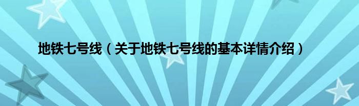 本文关于地铁七号线的基本详情介绍就讲解完毕,希望对大家有所帮助。