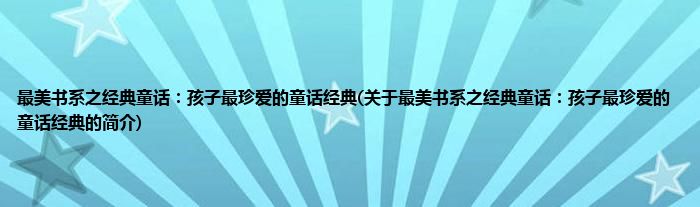 本文关于最美书系之经典童话:孩子最珍爱的童话经典的简介就讲解完毕,希望对大家有所帮助。