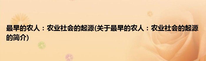 本文关于最早的农人:农业社会的起源的简介就讲解完毕,希望对大家有所帮助。