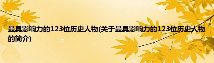 本文关于最具影响力的123位历史人物的简介就讲解完毕,希望对大家有所帮助。