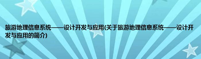 本文关于旅游地理信息系统——设计开发与应用的简介就讲解完毕,希望对大家有所帮助。