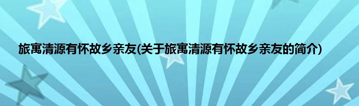 本文关于旅寓清源有怀故乡亲友的简介就讲解完毕,希望对大家有所帮助。