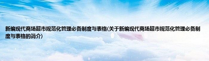 本文关于新编现代商场超市规范化管理必备制度与表格的简介就讲解完毕,希望对大家有所帮助。