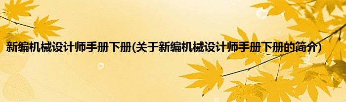 本文关于新编机械设计师手册下册的简介就讲解完毕,希望对大家有所帮助。