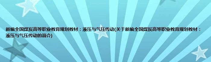 本文关于新编全国煤炭高等职业教育规划教材:液压与气压传动的简介就讲解完毕,希望对大家有所帮助。