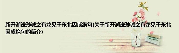 本文关于新开湖送孙诚之有龙见于东北因成绝句的简介就讲解完毕,希望对大家有所帮助。