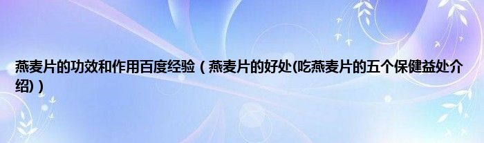 大家好,小科来为大家解答以上问题。燕麦片的功效和作用百度经验,燕麦片的好处(吃燕麦片的五个保健益处介绍)很多人还不知道,现在让我们一起来看看吧!