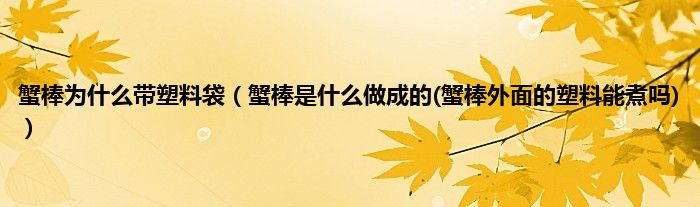 大家好,小科来为大家解答以上问题。蟹棒为什么带塑料袋,蟹棒是什么做成的(蟹棒外面的塑料能煮吗)很多人还不知道,现在让我们一起来看看吧!