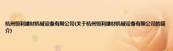 本文关于杭州恒利建材机械设备有限公司的简介就讲解完毕,希望对大家有所帮助。