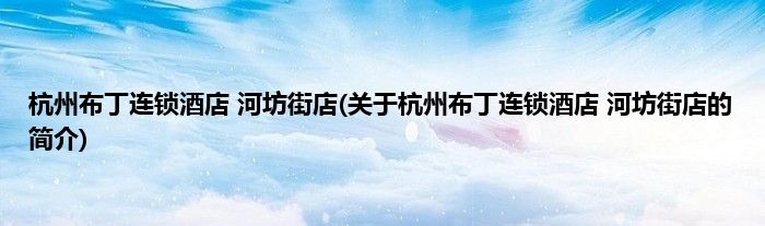 杭州布丁连锁酒店 河坊街店(关于杭州布丁连锁酒店 河坊街店的简介)