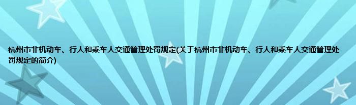 杭州市非机动车、行人和乘车人交通管理处罚规定(关于杭州市非机动车、行人和乘车人交通管理处罚规定的简介)
