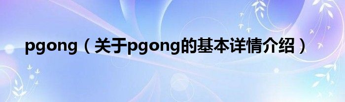本文关于pgong的基本详情介绍就讲解完毕,希望对大家有所帮助。