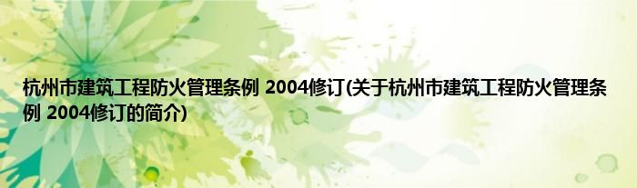 本文关于杭州市建筑工程防火管理条例 2004修订的简介就讲解完毕,希望对大家有所帮助。