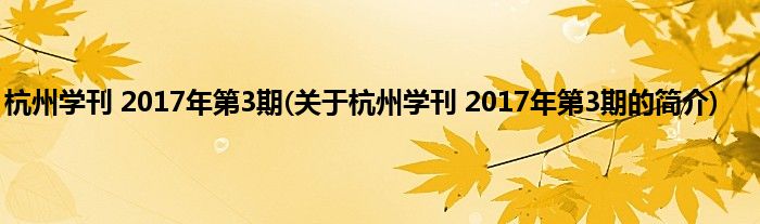 本文关于杭州学刊 2017年第3期的简介就讲解完毕,希望对大家有所帮助。