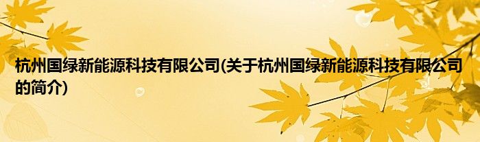 本文关于杭州国绿新能源科技有限公司的简介就讲解完毕,希望对大家有所帮助。