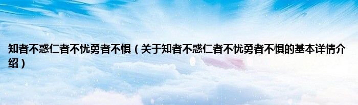 本文关于知者不惑仁者不忧勇者不惧的基本详情介绍就讲解完毕,希望对大家有所帮助。