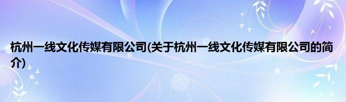 本文关于杭州一线文化传媒有限公司的简介就讲解完毕,希望对大家有所帮助。