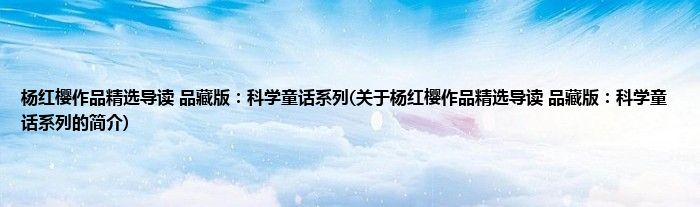 杨红樱作品精选导读 品藏版:科学童话系列(关于杨红樱作品精选导读 品藏版:科学童话系列的简介)