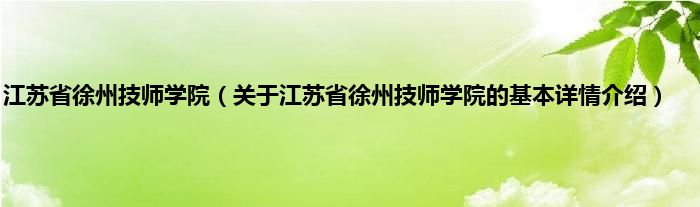本文关于江苏省徐州技师学院的基本详情介绍就讲解完毕,希望对大家有所帮助。