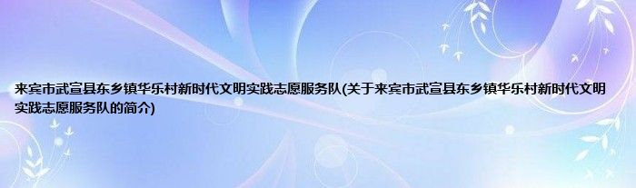 本文关于来宾市武宣县东乡镇华乐村新时代文明实践志愿服务队的简介就讲解完毕,希望对大家有所帮助。