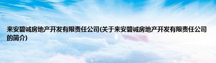 来安碧诚房地产开发有限责任公司(关于来安碧诚房地产开发有限责任公司的简介)