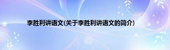 本文关于李胜利讲语文的简介就讲解完毕,希望对大家有所帮助。