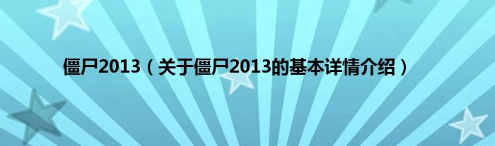 本文关于僵尸2013的基本详情介绍就讲解完毕,希望对大家有所帮助。