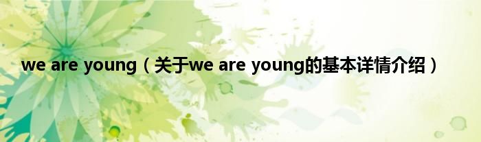 本文关于we are young的基本详情介绍就讲解完毕,希望对大家有所帮助。