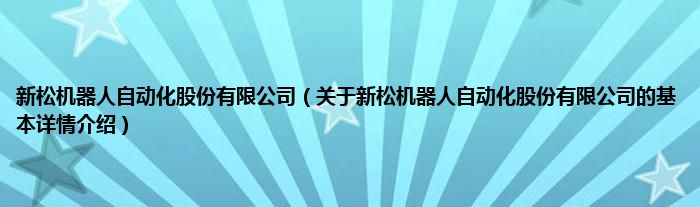 本文关于新松机器人自动化股份有限公司的基本详情介绍就讲解完毕,希望对大家有所帮助。