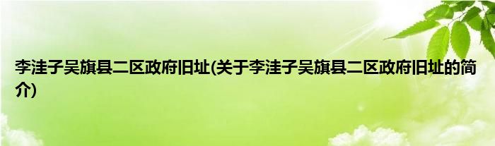 本文关于李洼子吴旗县二区政府旧址的简介就讲解完毕,希望对大家有所帮助。