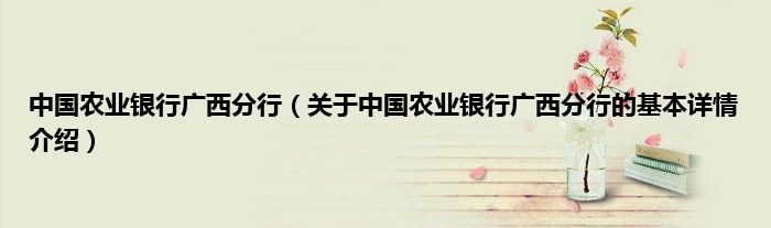 本文关于中国农业银行广西分行的基本详情介绍就讲解完毕,希望对大家有所帮助。