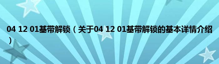 本文关于04 12 01基带解锁的基本详情介绍就讲解完毕,希望对大家有所帮助。