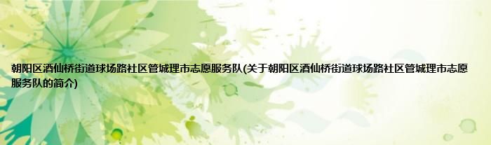 本文关于朝阳区酒仙桥街道球场路社区管城理市志愿服务队的简介就讲解完毕,希望对大家有所帮助。