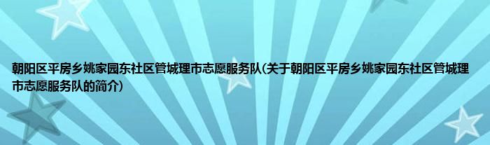 本文关于朝阳区平房乡姚家园东社区管城理市志愿服务队的简介就讲解完毕,希望对大家有所帮助。