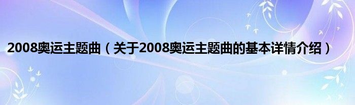 本文关于2008奥运主题曲的基本详情介绍就讲解完毕,希望对大家有所帮助。