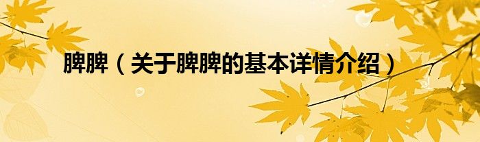 本文关于脾脾的基本详情介绍就讲解完毕,希望对大家有所帮助。