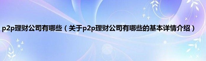 本文关于p2p理财公司有哪些的基本详情介绍就讲解完毕,希望对大家有所帮助。