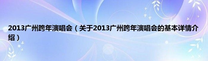 本文关于2013广州跨年演唱会的基本详情介绍就讲解完毕,希望对大家有所帮助。