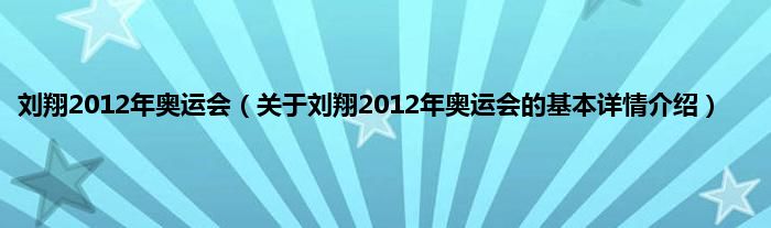 本文关于刘翔2012年奥运会的基本详情介绍就讲解完毕,希望对大家有所帮助。