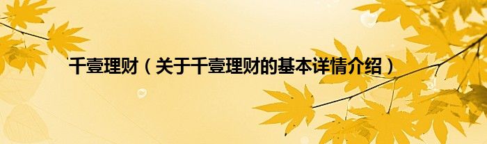 本文关于千壹理财的基本详情介绍就讲解完毕,希望对大家有所帮助。
